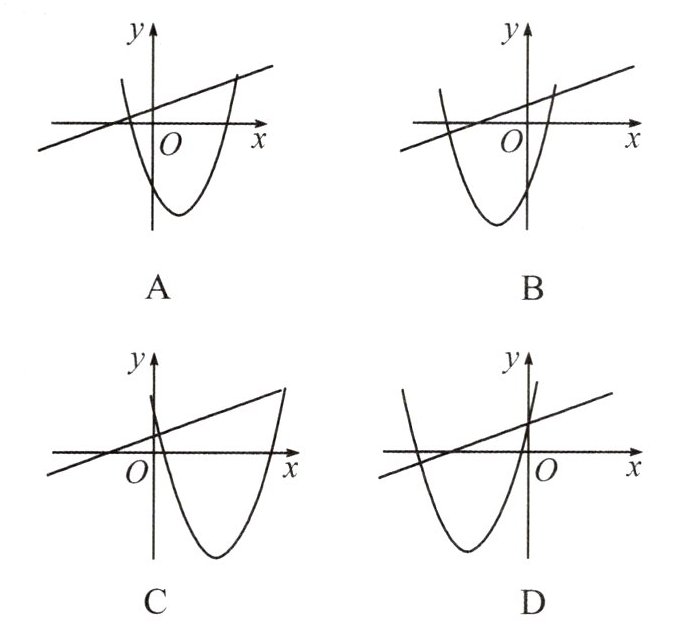 1. 直线$y = ax + b$与抛物线$y = ax^{2}+bx + b$在同一平面直角坐标系中的大致图象正确的是(