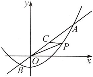 (2) $ P $ 是直线 $ AB $ 下方的抛物线上的一个动点 (不与点 $ A $,$ B $ 重合),过点 $ P $ 作 $ x $ 轴的平行线,与直线 $ AB $ 交于点 $ C $,连接 $ PO $,设点 $ P $ 的横坐标为 $ m $。