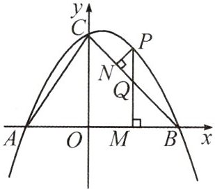 (3) 过点 $ P $ 作 $ PN \perp BC $,垂足为 $ N $,求 $ PN $ 的长度的最大值。