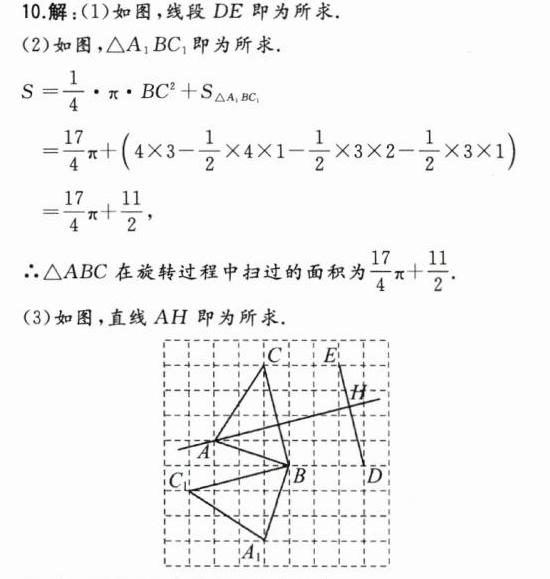 9.△ABC在平面直角坐标系中的位置如图所示, 将其绕点P顺时针旋转得到△A'B'C',则点P的坐标是 (