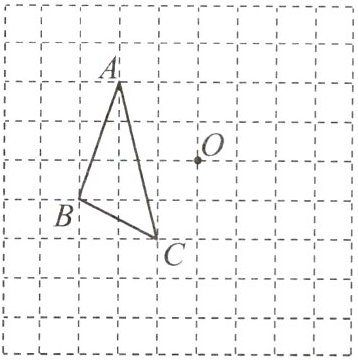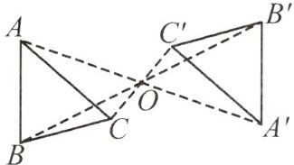5.(教材P69习题T1变式)如图,$\triangle ABC$是格点三角形(点A,B,C都在格点上),点O也在格点上.请在图中画出与$\triangle ABC$关于点O对称的$\triangle A'B'C'$.