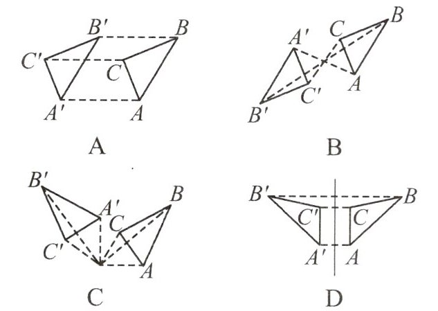 1.下列各组图形中,$\triangle A'B'C'$与$\triangle ABC$成中心对称的是 (
