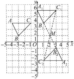 (2)在(1)中所得的△A₁B₁C₁和△A₂B₂C₂关于点M成中心对称,请直接写出对称中心点M的坐标.