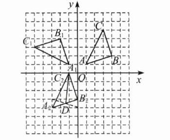 (3)借助网格,请用无刻度的直尺画出$\triangle A_{2}B_{2}C_{2}$的中线$C_{2}D$.(保留作图辅助线)