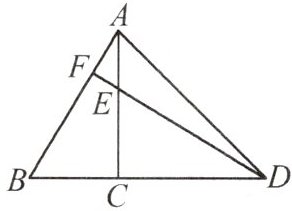 - 在$\triangle AEF$中,根据三角形内角和为$180^{\circ}$,可得$\angle AFE=180^{\circ}-(\angle AEF+\angle BAC)=90^{\circ}$,即$AB\perp DF$。