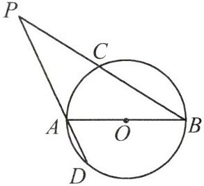 因为$\angle BAD$和$\angle B$所对的弧都是$\overset{\frown}{BD}$,且同弧所对的圆心角是圆周角的$2$倍,$\angle BAD$是圆心角$\angle BOD$所对的圆周角(这里$\angle BAD$和$\angle B$所对弧相同,从圆周角性质角度),$\angle BAD = \angle B+\angle P$(三角形外角性质:三角形的一个外角等于与它不相邻的两个内角之和,$\angle BAD$是$\triangle ABP$的外角),把$\angle B=\angle P$代入可得$\angle BAD = 2\angle P$。
