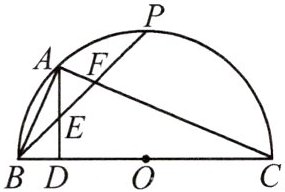 6. 如图,$BC$ 是半圆 $O$ 的直径,$P$ 是半圆的中点,$A$ 是 $\overset{\frown}{BP}$ 的中点,$AD \perp BC$ 于点 $D$,连接 $AB$,$PB$,$AC$,$BP$ 分别与 $AD$,$AC$ 相交于点 $E$,$F$。