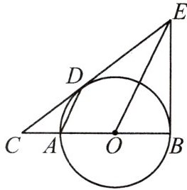 11.如图,AB为$\odot O$的直径,过圆上一点D作$\odot O$的切线CD交BA的延长线于点C,连接AD,过点O作$OE// AD$交CD的延长线于点E,连接BE.