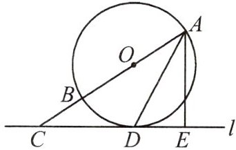 8.(2024·临夏州)如图,直线l与$\odot O$相切于点D,AB为$\odot O$的直径,过点A作$AE⊥l$于点E,延长AB交直线l于点C.