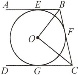 因为$AB$、$BC$、$CD$分别与$\odot O$相切于点$E$、$F$、$G$,所以$BE = BF$,$CF = CG$,$\angle OBE=\angle OBF$,$\angle OCF=\angle OCG$。