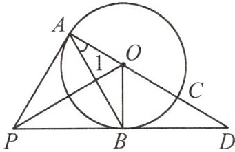 14.如图,PA,PB是⊙O的切线,切点分别为A,B,AC是⊙O的直径,AC,PB的延长线相交于点D,连接OB.