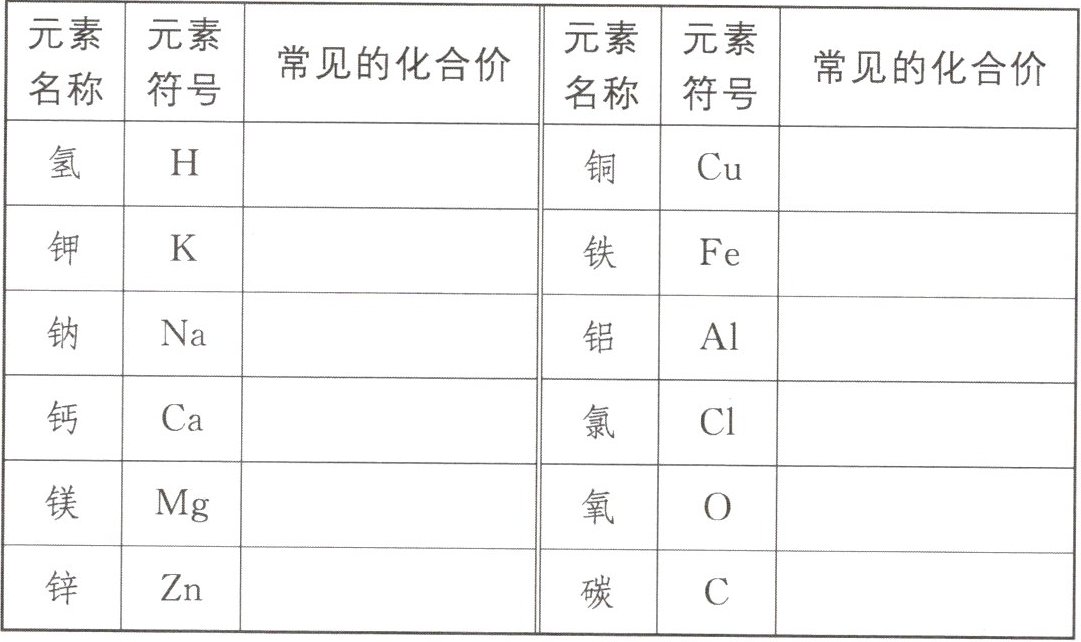 |元素名称|元素符号|常见的化合价|元素名称|元素符号|常见的化合价|