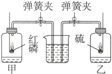 夹,将足量的红磷和硫点燃后分别放入甲、乙两个集气瓶中,待反应结束冷却至室温后,再分别打开弹簧
