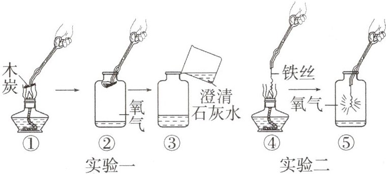 (1)不同 检验木炭燃烧是否生成二氧化碳 碳 + 氧气 $\xrightarrow{点燃}$ 二氧化碳