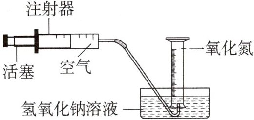 6. (2022·浙江温州中考节选)小明用一氧化氮气体检验教室内氧气含量是否低于正常值。在老师的指导下,小明进行了如图所示的实验。用注射器获取V₁mL教室内的空气,通过导管全部缓缓地推入量筒,与量筒内足量的V₂mL一氧化氮气体混合,待充分反应后,读出量筒中剩余气体的体积为V₃mL。