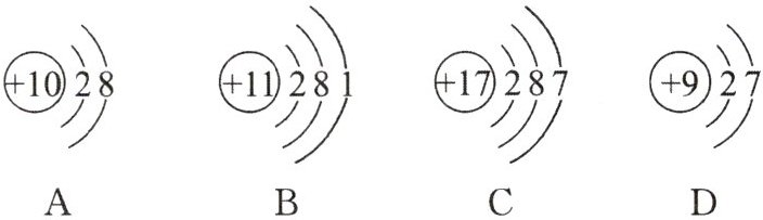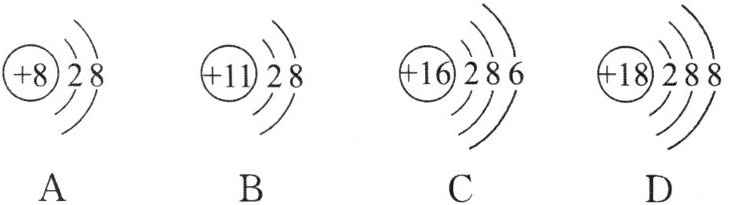 4. A、B、C、D四种原子的结构示意图如图所示,请据图回答下列问题。