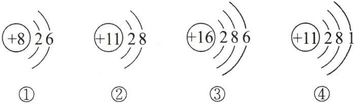 4.根据以下几种微观粒子的结构示意图回答问题。