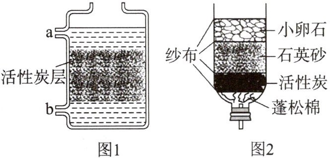 (2)某同学自制的简易净水器如图2所示,其中小卵石、石英砂的作用是