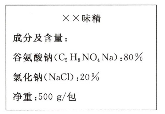 10. 味精是常用的调味品之一,它的鲜味来自其中的主要成分谷氨酸钠(化学式是$C_{5}H_{8}NO_{4}Na$)。某品牌味精包装上的标注内容如图所示,请回答: