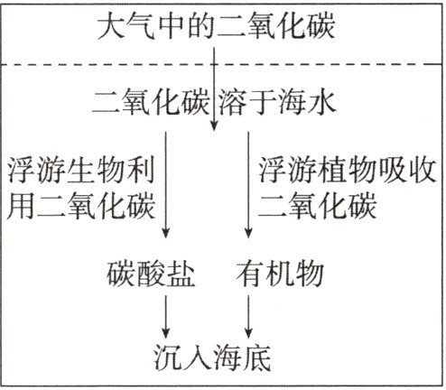11.新考法·跨学科 我国努力争取2060年前实现碳中和,因此,控制二氧化碳排放和增加二氧化碳吸收都至关重要。研究发现,海洋是重要的固碳之地,海洋吸收二氧化碳的三种方式如图所示。