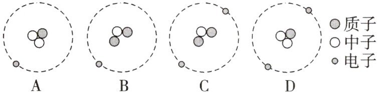(3)已知氦-3原子是一种含2个质子和1个中子的原子,下列模型能表示氦-3原子的是