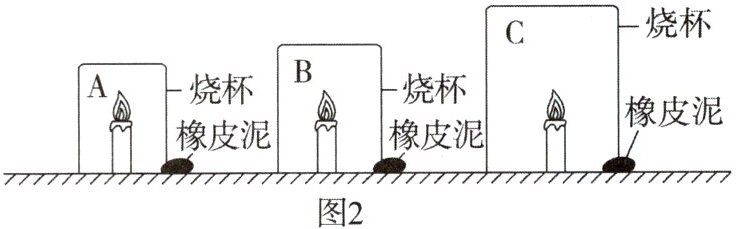 ②将A烧杯倒扣在点燃的蜡烛上方,立即用橡皮泥密封住烧杯尖嘴口;