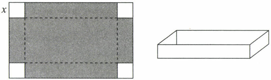 20. 如图是一张长40 cm、宽24 cm的矩形纸板,将纸板四个角各剪去一个边长为x cm的正方形,然后将四周突出部分折起,可制成一个无盖纸盒.