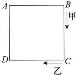 12. 如图所示,甲、乙两人分别从正方形花坛$ABCD$的顶点$B,C$同时出发,甲由点$B$向点$C$运动,乙由点$C$向点$D$运动,甲的速度为$2$米/分钟,乙的速度为$1$米/分钟.若正方形花坛的周长为$40$米,问几分钟后,两人相距$2\sqrt {10}$米?