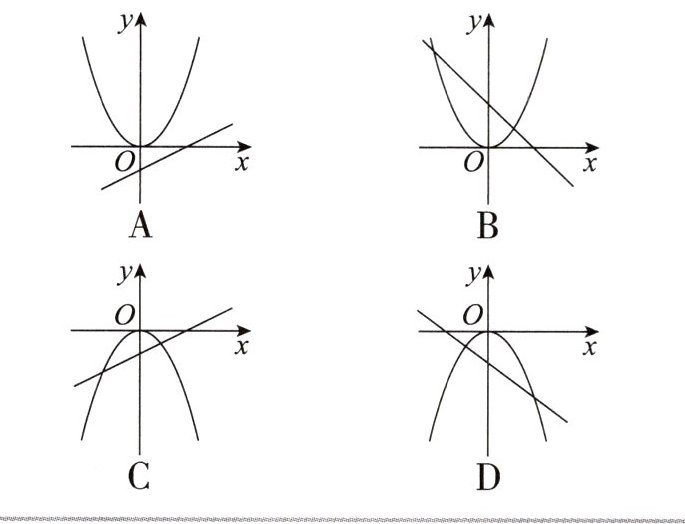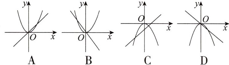 当$ab>0$时,二次函数$y= ax^{2}与一次函数y= ax+b$在同一平面直角坐标系中的图象可能是 (