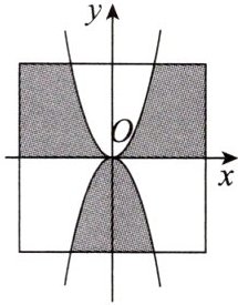 12. [基本思想—数形结合思想]如图,正方形的边长为4,以正方形的中心为原点建立平面直角坐标系,作出函数$y= 2x^{2}与y= -2x^{2}$的图象,则阴影部分的面积是