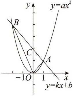 13. 如图,一次函数$y= kx+b与抛物线y= ax^{2}交于点A(1,m),B(-2,4)$,与y轴交于点C.