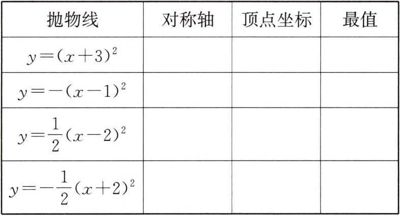 2. 若抛物线 $ y = a(x - h)^2 $ 是由 $ y = -\frac{2}{3}x^2 $ 向左平移 2 个单位长度得到的,则 $ a = $