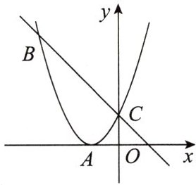 13. 如图,已知抛物线$y = x^{2} - (k + 1)x + 1的顶点A在x$轴的负半轴上,且与一次函数$y = -x + 1的图象交于点B和点C$.