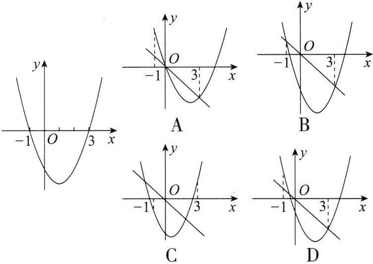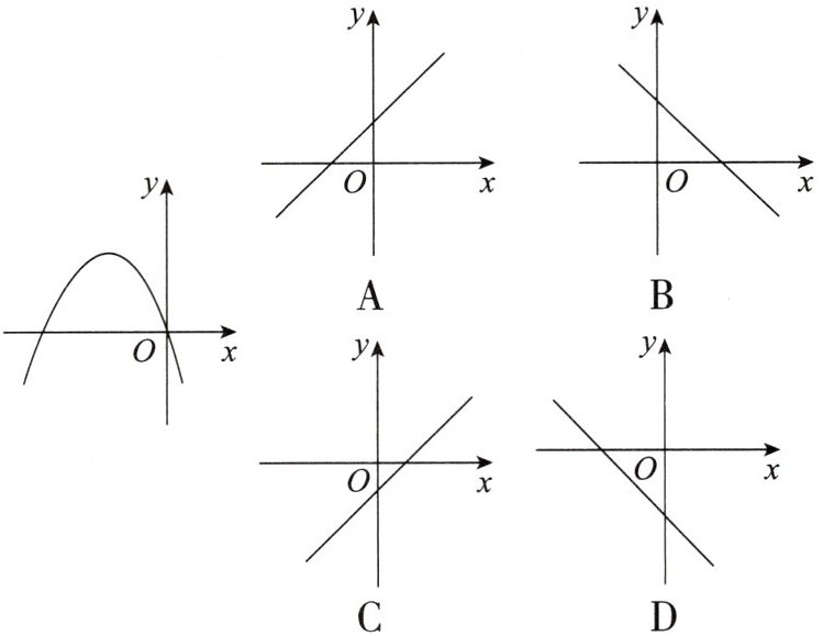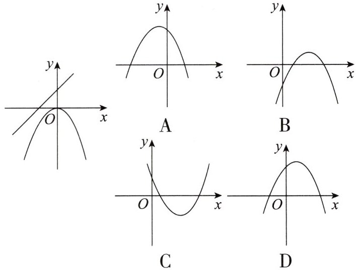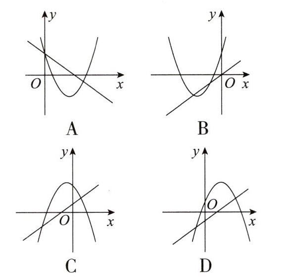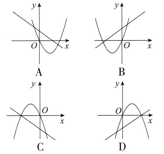 5. 在同一平面直角坐标系中,二次函数$y = ax^{2}与一次函数y = bx + c$的图象如图所示,则二次函数$y = ax^{2} + bx + c$的图象可能是(