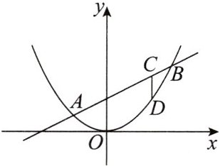 1. 已知二次函数 $ y = x ^ { 2 } $ 与一次函数 $ y = 2 x + 1 $ 相交于 $ A $,$ B $ 两点,$ C $ 是线段 $ AB $ 上的动点,$ D $ 是抛物线上的动点,且 $ CD $ 平行于 $ y $ 轴. 在移动过程中,线段 $ CD $ 的最大值为