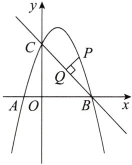 (2)如图,$ P $ 是线段 $ BC $ 上方的抛物线上一动点,过点 $ P $ 作 $ PQ \perp B C $,垂足为点 $ Q $,请问线段 $ PQ $ 是否存在最大值?若存在,请求出最大值及此时点 $ P $ 的坐标;若不存在,请说明理由.