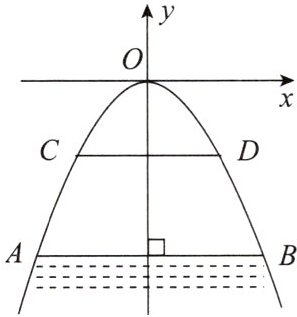 10. 如图,有一座抛物线形拱桥,桥下面在正常水位AB时,水面宽度为20米,水面距离拱顶4米,当水位上升达到警戒线CD时,水面宽度为10米. 若洪水到来时,水位以每小时0.2米的速度从警戒线开始上升,则再持续