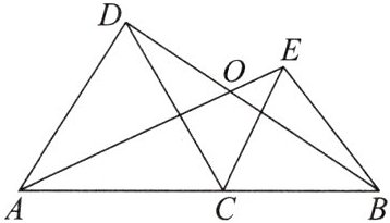 8. [教材P76复习题23第5题改编]如图,C是线段AB上一点,分别以AC,BC为边,在AB的同侧作等边$\triangle ACD和等边\triangle BCE$,连接AE,BD交于点O.