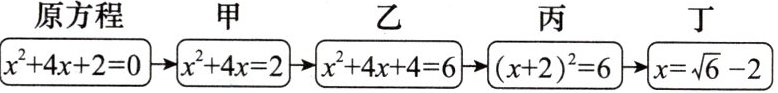 原方程 $ \xrightarrow{\text{甲}} $ $ \xrightarrow{\text{乙}} $ $ \xrightarrow{\text{丙}} $ $ \xrightarrow{\text{丁}} $