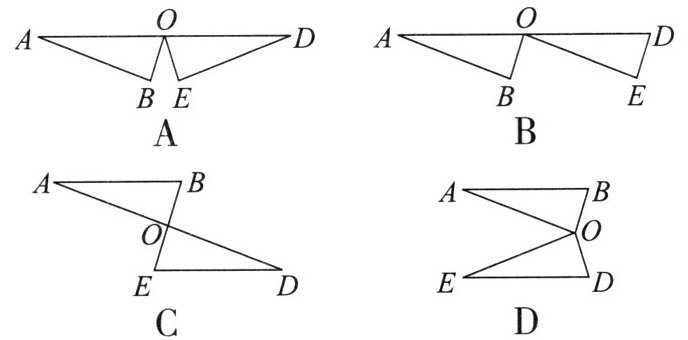 1. 将△AOB绕点O旋转180°得到△DOE,则下列作图正确的是 (
