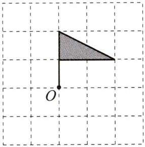 【解析】:根据旋转的性质,图形绕点$O$顺时针旋转$90^{\circ}$,就是将三角旗的每条边绕点$O$顺时针旋转$90^{\circ}$。先确定三角旗的几个顶点绕点$O$顺时针旋转$90^{\circ}$后的位置,再依次连接这些顶点。