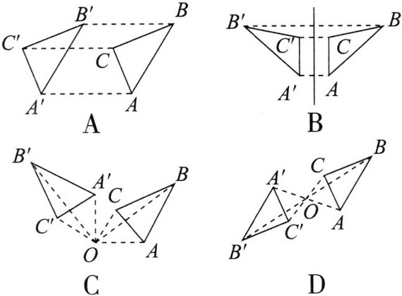 4. 如图,$△ABC与△A'B'C'$关于点O成中心对称,则下列说法错误的是 (