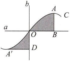 12. 如图,直线$a⊥$直线b于点O,曲线C关于点O成中心对称,点A的对称点是$A',AB⊥a$于点B,$A'D⊥b$于点D.若$OB= 3,AB= 2$,则阴影部分的面积之和为