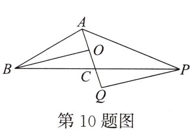 10. [与T6互为孪生题]如图,BO是等腰$△ABC(AB= BC)$的底边中线,$AC= 2,AB= 4,△PQC与△BOC$关于点C成中心对称,连接AP,则AP的长为 (