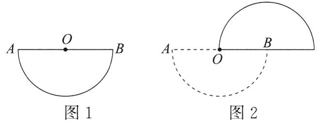 7.以图1(以点O为圆心,半径为1的半圆)作为“基本图形”,分别经历如下变换,不能得到图2的是(
