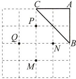 4.如图,在4×4的正方形网格纸中,△ABC的三个顶点都在格点(网格线的交点)上,现要在这张网格纸的四个格点M,N,P,Q中找一点作为旋转中心,将△ABC绕着这个中心进行旋转,使得旋转前后的两个三角形形成中心对称,且旋转后的三角形的三个顶点都在这张4×4的正方形网格纸的格点上,那么满足条件的旋转中心有(