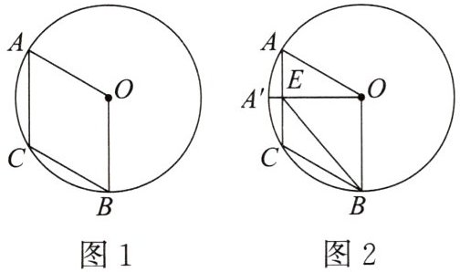(2)如图2,将线段OA绕圆心O逆时针旋转$30^{\circ }$,得到线段$OA',OA'$交AC于点E,连接BE,若$CE= 1$,求BE的长.