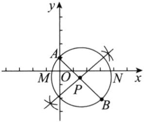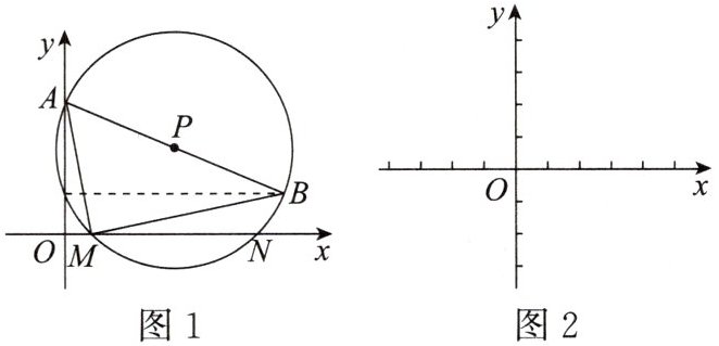 19世纪英国著名文学家和历史学家卡莱尔给出了一元二次方程$x^{2}+bx+c= 0$的几何解法:如图1,在平面直角坐标系中,已知点$A(0,1),B(-b,c)$,以AB为直径作$\odot P$.若$\odot P$交x轴于点$M(m,0),N(n,0)$,则m,n为方程$x^{2}+bx+c= 0$的两个实数根.