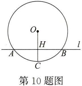 10. [易错题]如图,$\odot O的半径OC= 5$,直线$l⊥OC$,垂足为点H,且l交$\odot O$于A,B两点,$AB= 8$.若l沿OC所在直线平移后与$\odot O$相切,则平移的距离为