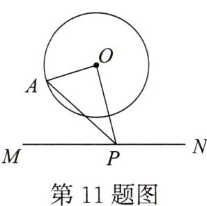 11. 已知A是半径为2的$\odot O$上一个动点,点O到直线MN的距离为3,P是MN上一个动点.在运动过程中,若$∠POA= 90^{\circ }$,则线段PA的最小值是